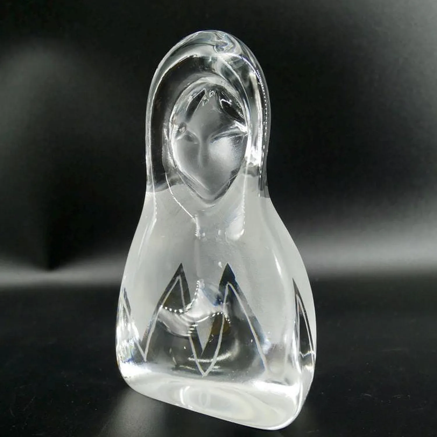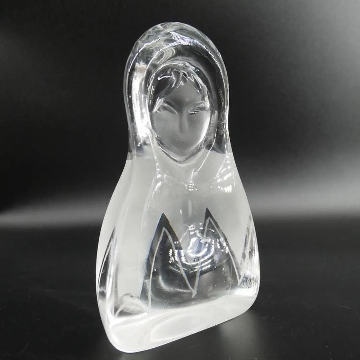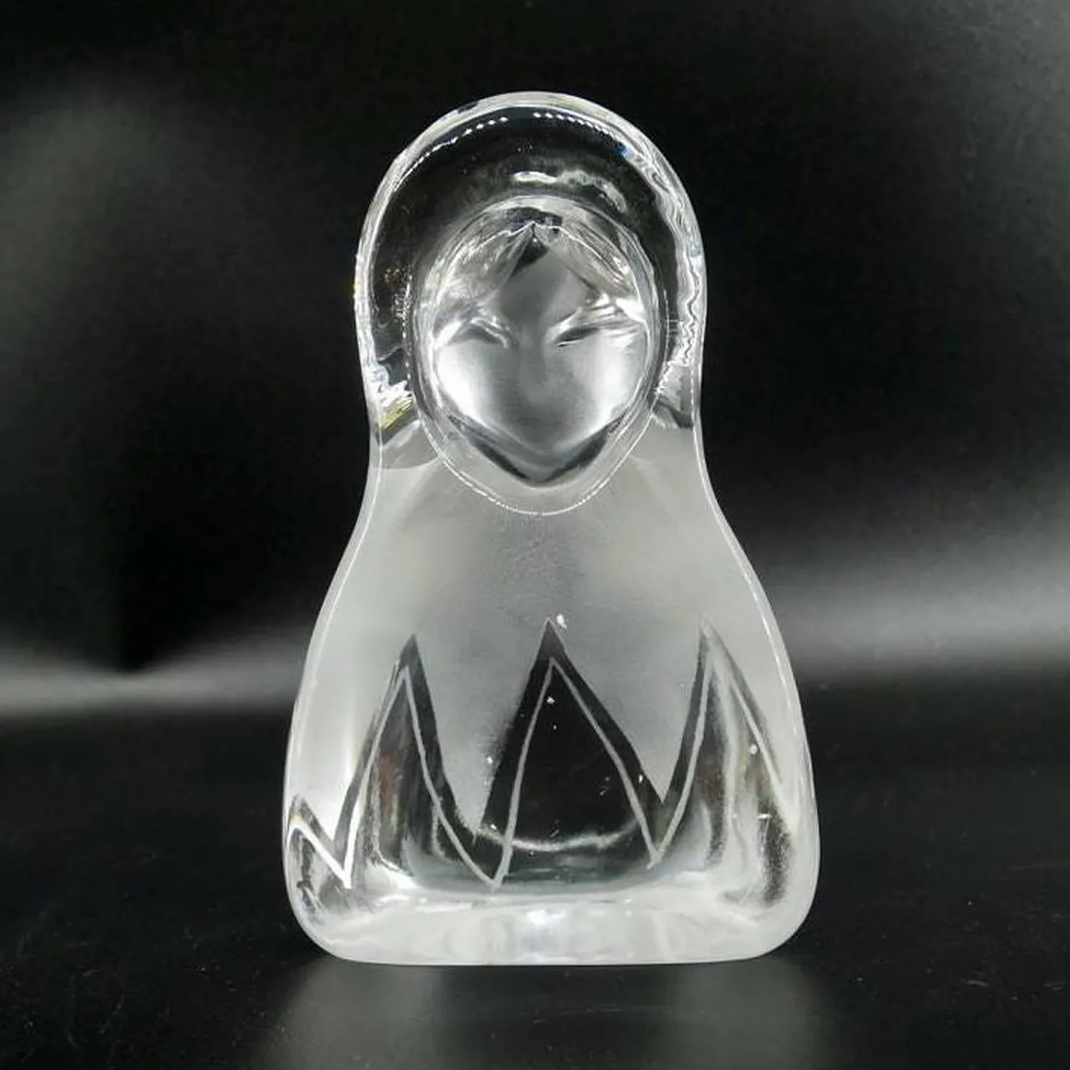 Add distinctive Nordic artistry to your collection with this remarkable vintage glass sculpture by Sweden’s master engraver Mats Jonasson for Royal Krona. Created in the 1970s during the golden age of Scandinavian glass art, this substantial paperweight features an intricately detailed Eskimo girl portrait showcasing Jonasson’s legendary skill in crystal engraving and three-dimensional glass sculpture.