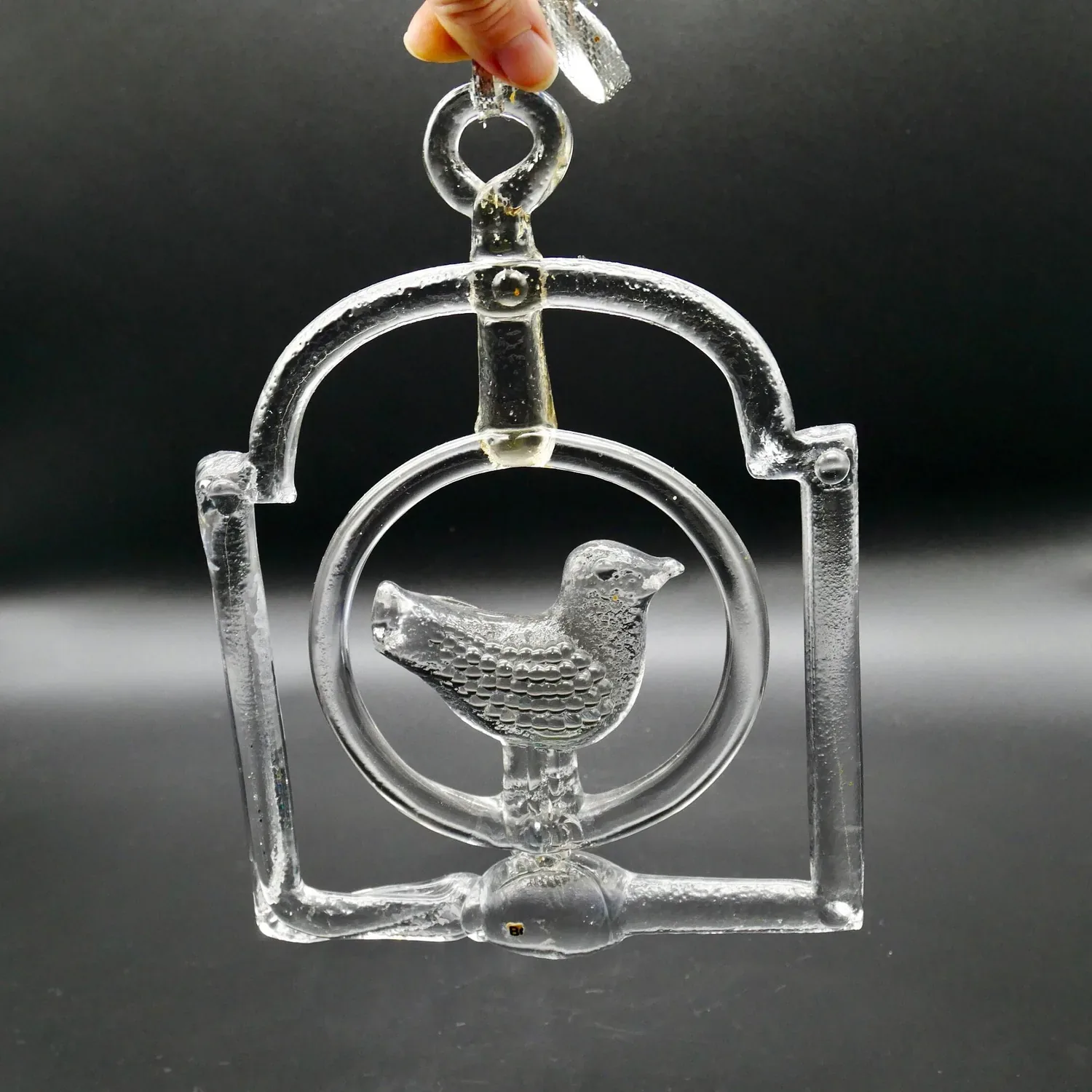 Magnificent large bird suncatcher created by renowned Swedish glass artist Bertil Vallien for Kosta Boda during the 1970s. This impressive 25cm art glass sculpture features distinctive textured surfaces that create spectacular light patterns.