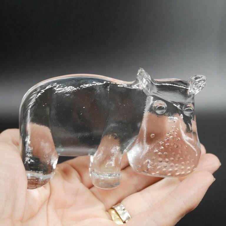 Kosta Boda Hippo Sculpture Bertil Vallien Zoo Series Swedish Crystal
