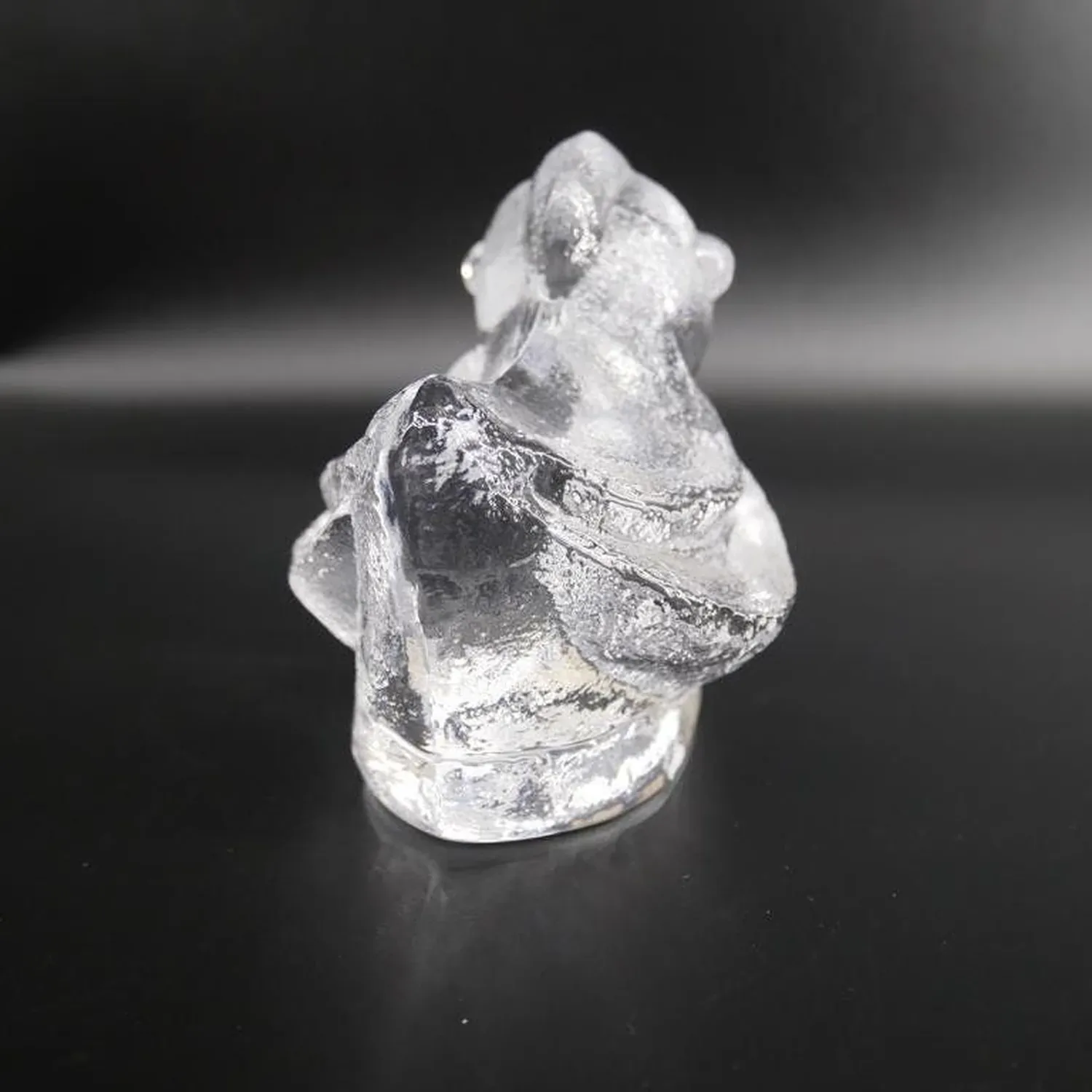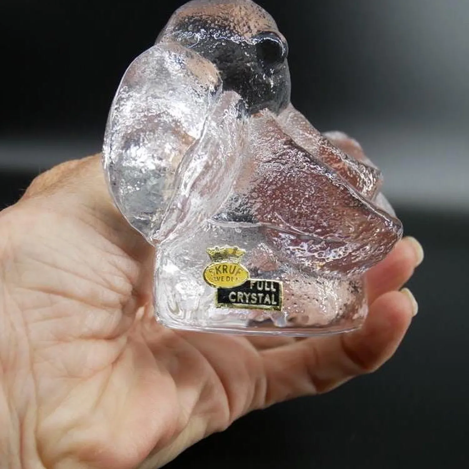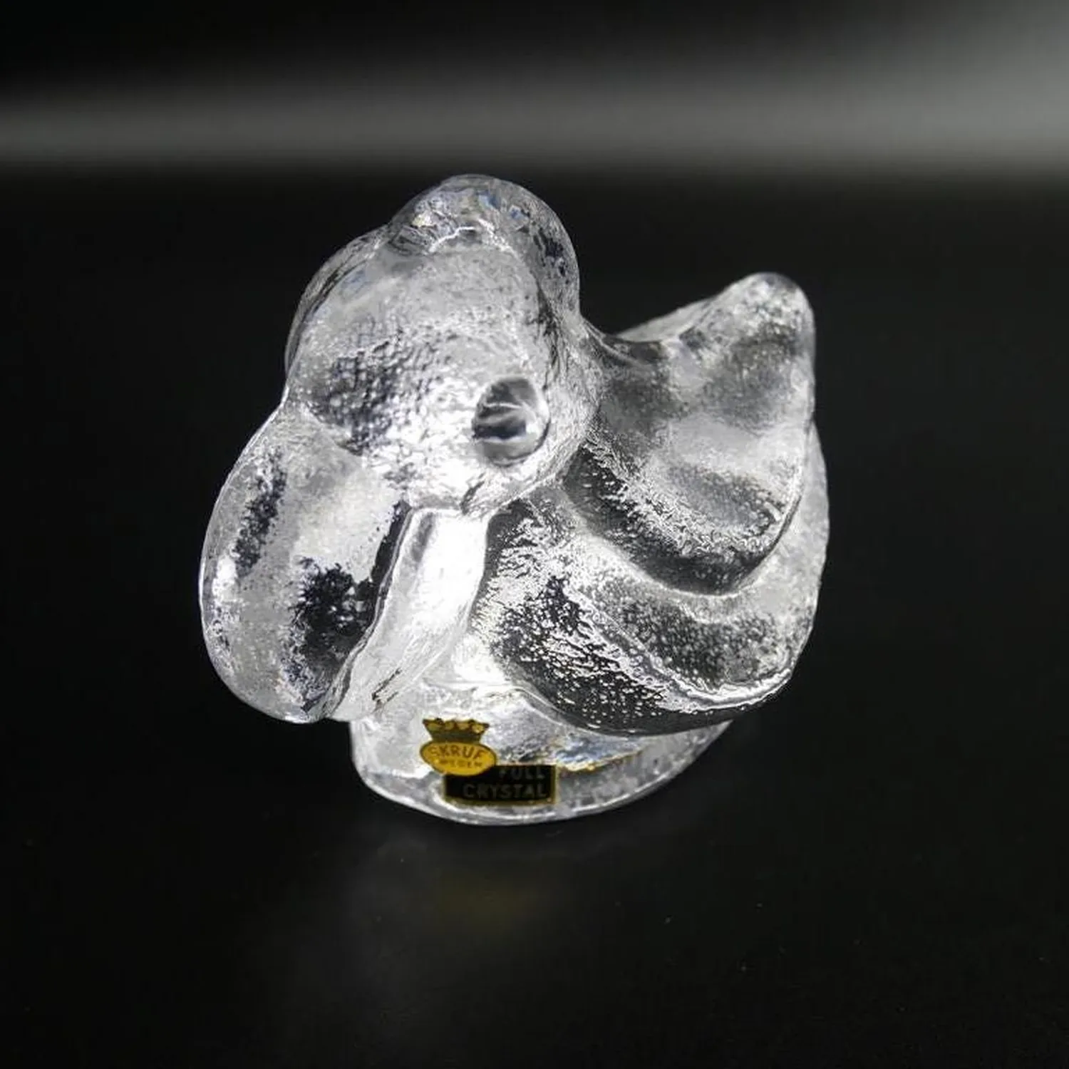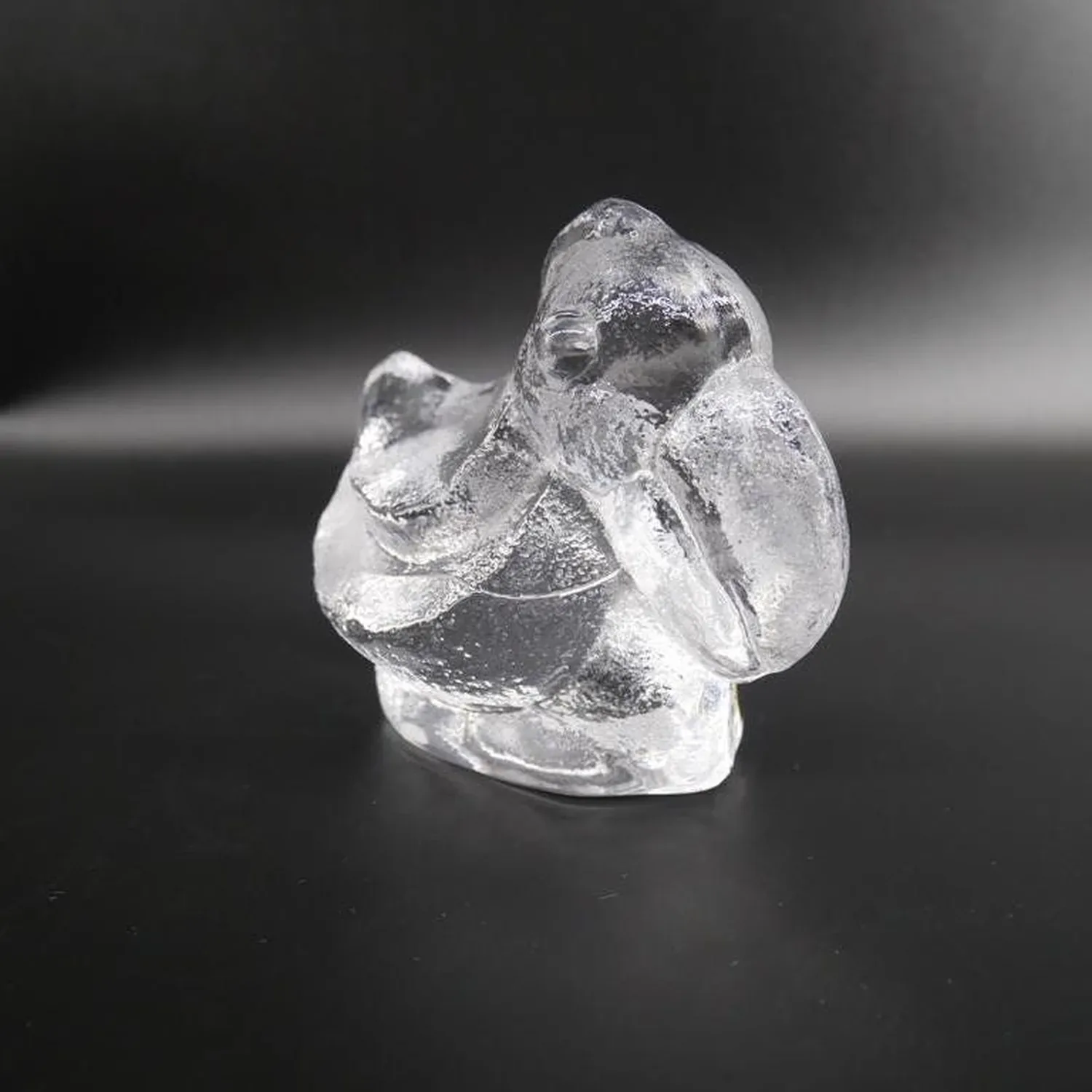 Magnificent brutalist glass duck sculpture by renowned Swedish designer Lars Hellsten for Skruf Sweden. This striking piece exemplifies the bold, sculptural approach of 1970s Scandinavian glass art, featuring the distinctive thick-walled construction and organic form that made Hellsten a celebrated figure in Swedish design.