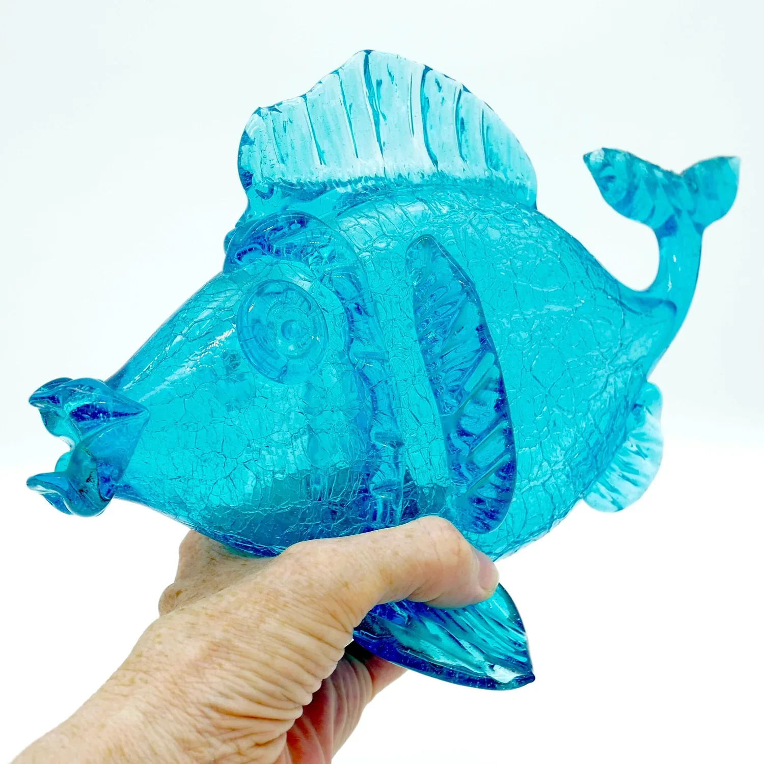 Mid-Century Blue Crackle Glass Fish Sculpture, 1960s Marine Decor