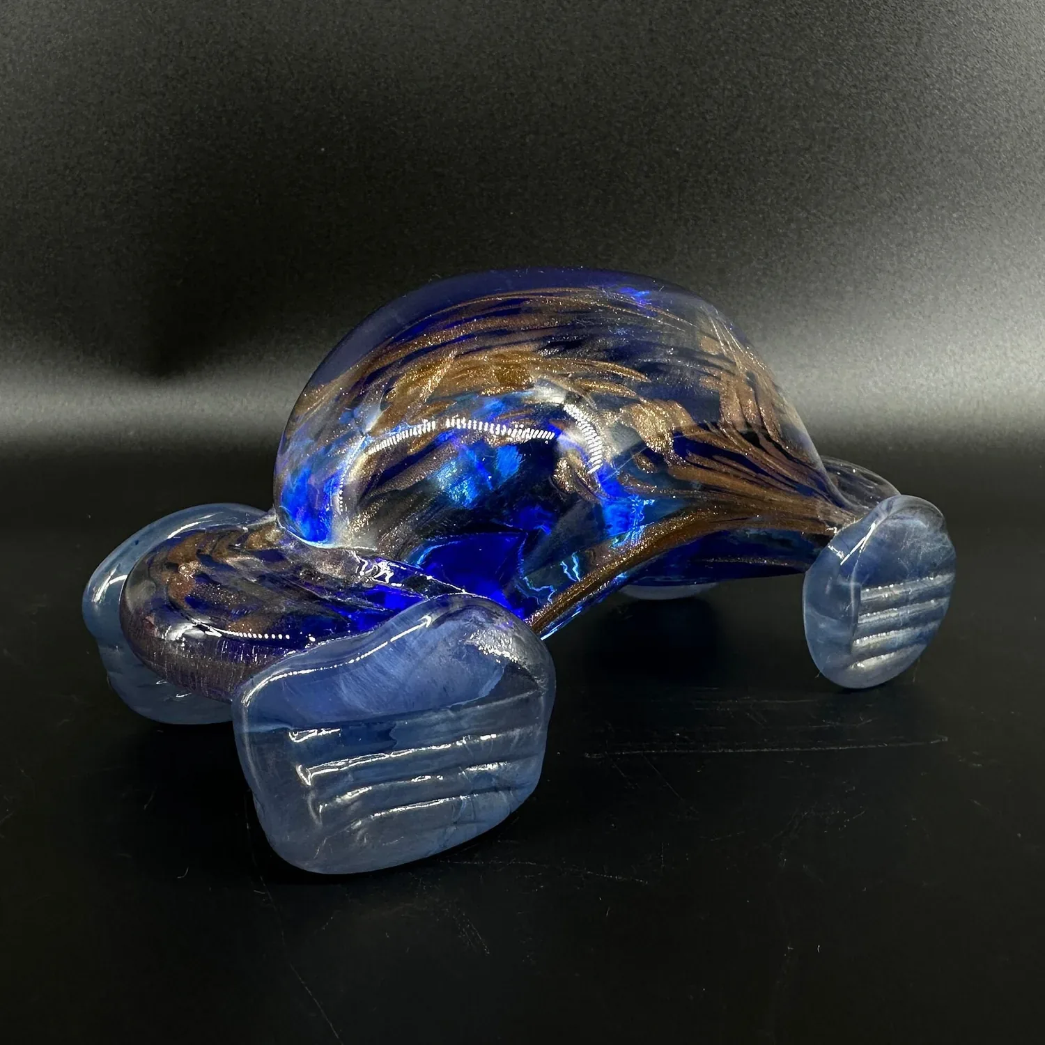Vintage Abstract Blue and Gold Glass Car figurine Sculpture – Signed