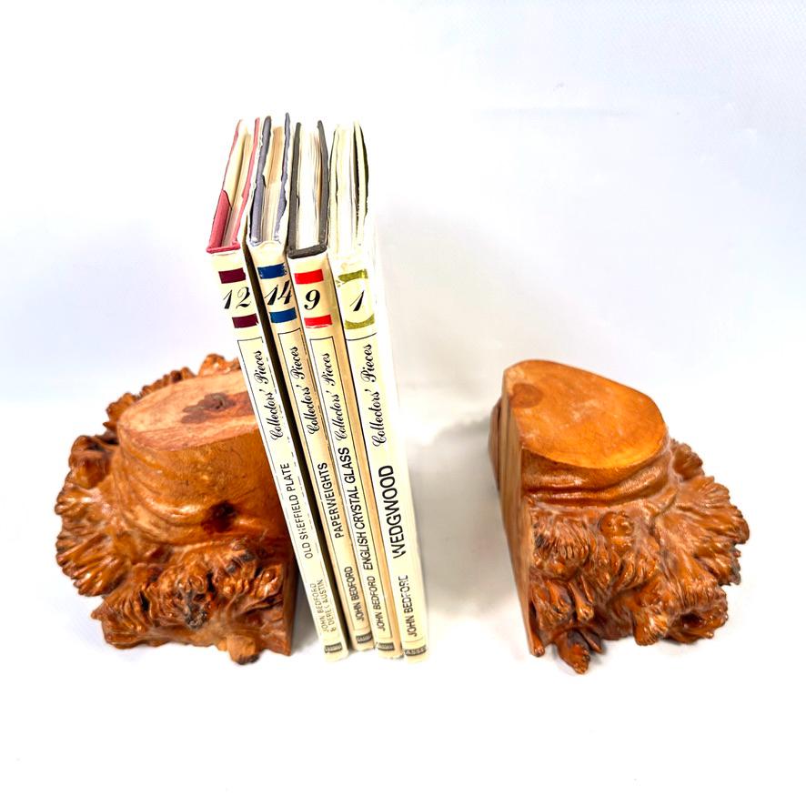 Finished with a warm lacquer that enhances the swirling grain and rich wood tones, these bookends transform ordinary shelving into curated displays. They are equally at home supporting leather-bound classics or contemporary reads.