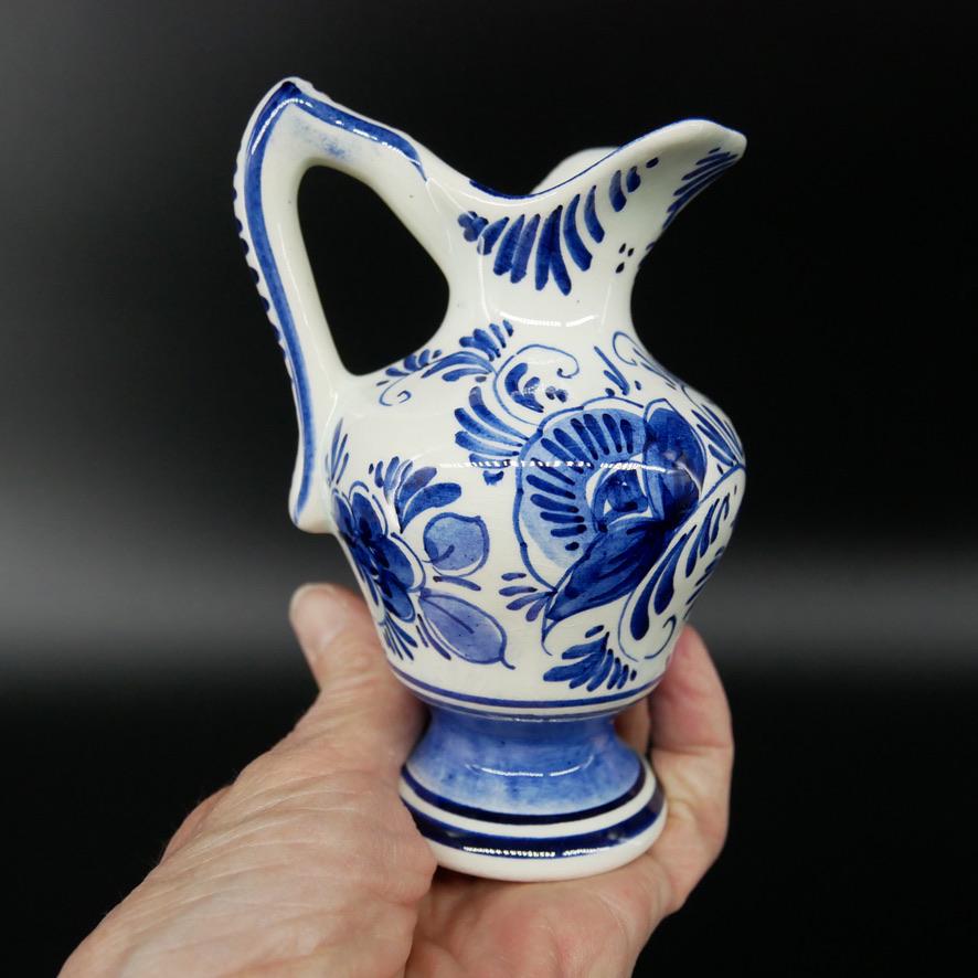 Whether used as a creamer for tea or coffee, a small vase for flowers, or simply as a display piece, this versatile jug adds a touch of Dutch charm to any kitchen, dining room, or vintage collection. A beautiful example of traditional European pottery craftsmanship.