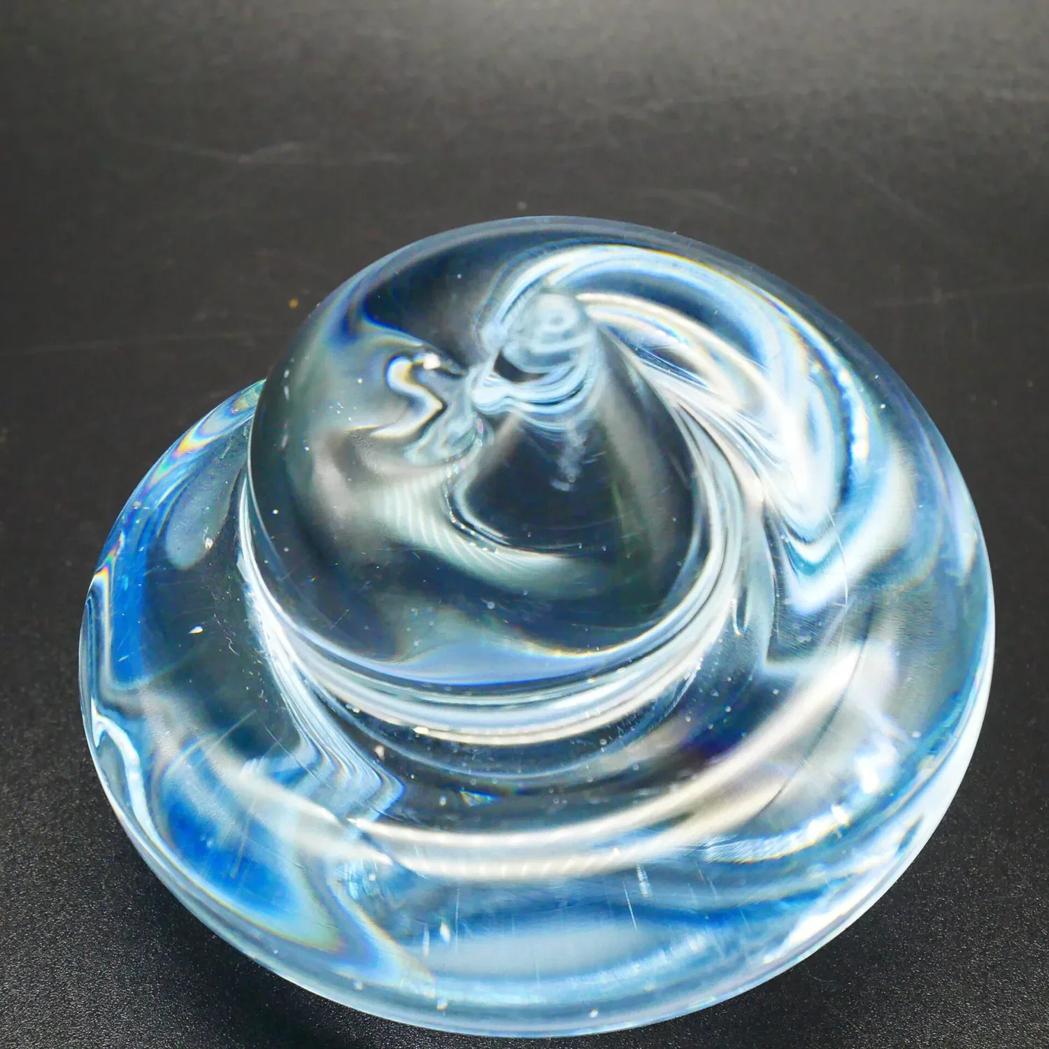Magnificent ice blue crystal paperweight from FM Ronneby Sweden, showcasing the exceptional craftsmanship of Sweden’s renowned mid-century glass manufacturers. This stunning 1960s piece exemplifies the clarity and artistic excellence that made Swedish art glass internationally celebrated.
